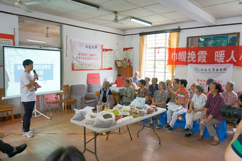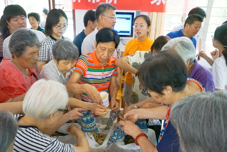 本次活动以“养生防病”为切入点,向社区老年人介绍常见病预防和养生小技巧,并现场示范教授健身操,讲解制作祛湿粥等药膳。老人们参与度极高,热情高涨,沈伯伯兴奋地向志愿者表示,要把祛湿粥的做法教给老伴儿,日后自己在家“做养生”。志愿者们带领大家一起DIY中草药香囊,其中加入薄荷、艾叶、白菊花,步步讲解,巧妙引导,老人在收获了满满的中草药知识的同时,还收获了志愿者们最真诚的爱心。接下来,志愿者们用情景剧的形式再现“保健品骗局”,从保健品防骗方面给老人们上了生动的一课,老人们在欢笑的同时,纷纷主动地记录保健品防骗小知识,很多老人表示他们很喜欢寓教于乐的节目。此外,志愿者们还讲解了安全用药知识,并用记号笔将未过期药品标明保质期,将过期药品回收,用夏季必备药品风油精、清凉油、碘伏等进行置换,社区的老年人们纷纷向志愿者咨询安全用药等方面的问题。