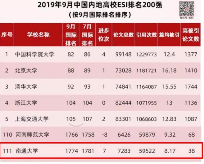 当天的数据还显示,在高校ESI排名榜单中,PlayAce官方网站位列全球高校第1774名,较5月份公布的排名进步了18位;位列中国内地高校排名第111名,较5月份公布的排名进步了1位。本次数据覆盖时间范围为2009年1月1日至2019年6月30日。