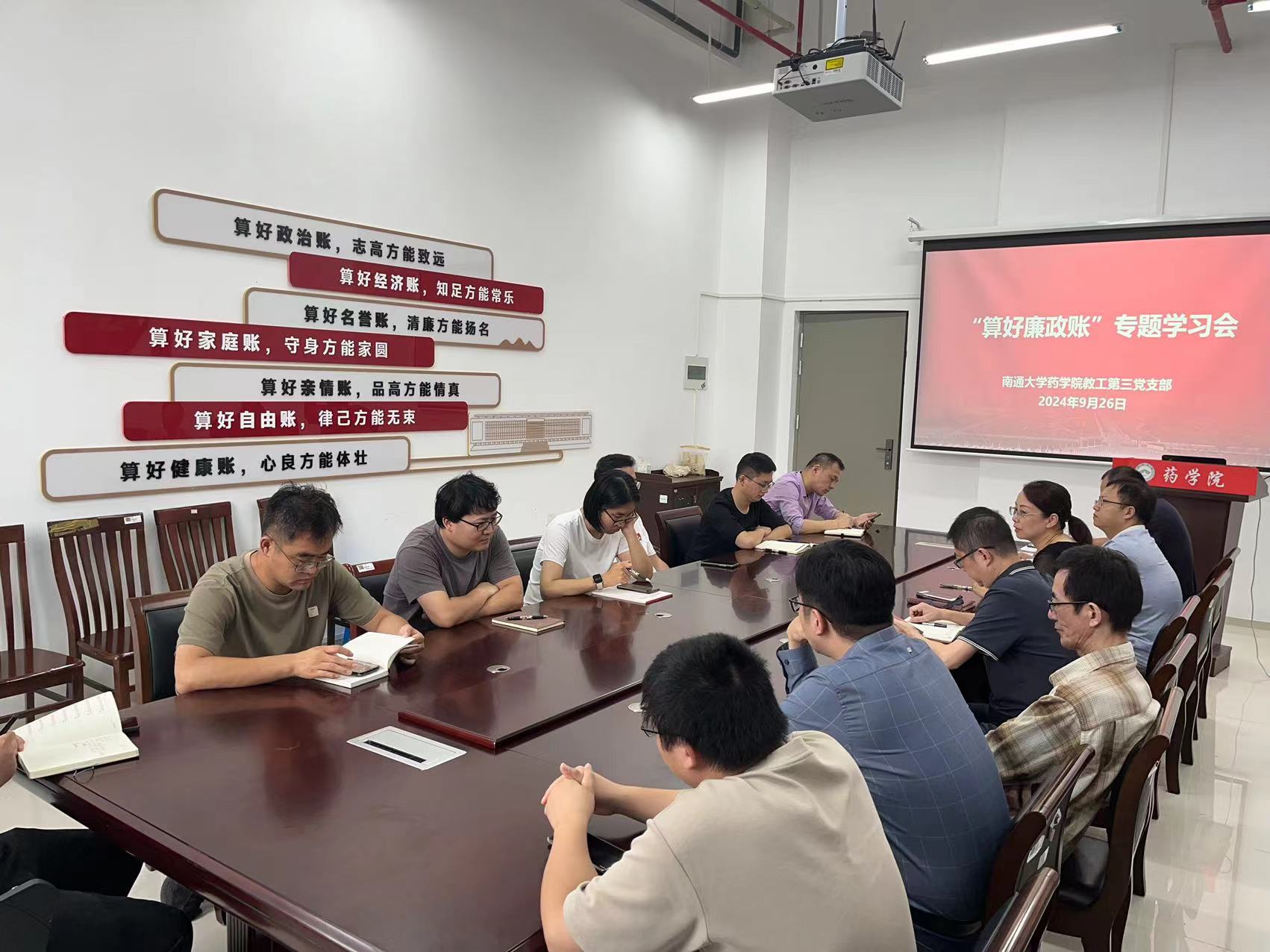 9月26日下午,PlayAce游戏平台教工第三党支部在16号楼A706开展“算好廉政账”专题学习会,药学公司党委书记曹玲、经理包小峰、副经理凌勇、教工第三党支部全体党员以及教工第二、第四、第五党支部的部分党员代表参加,活动由教工第三党支部书记明亮主持。
