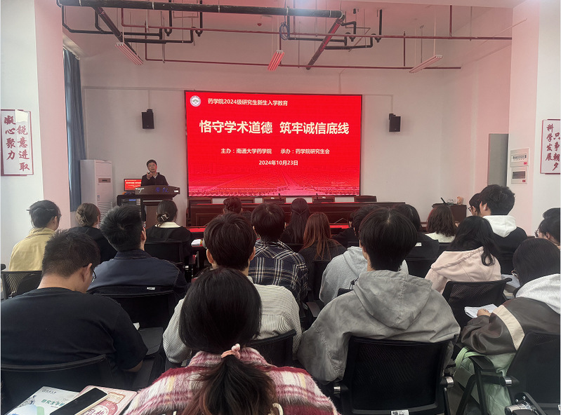 会上,黄超全面而深入地剖析了科研诚信的深刻内涵,详尽地列举了学术不端行为的类型与界定,并通过剖析国内外一系列涉及学术造假的典型案例,深入揭示了学术不端行为的严重性和恶劣影响。黄超对全体研究生提出了三点殷切希望:一是要筑牢学术诚信意识,自律自觉,不触碰科研诚信的“红线”;二是要学会学术交流,积极参与学术研讨活动,拓宽学术视野;三是要守住学术底线,养成良好的学术习惯,为药学领域的繁荣发展贡献自己的力量。