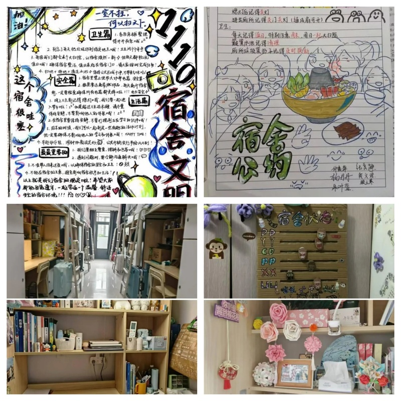此次宿舍文化分为寝室文化公约制作、寝室故事分享,寝室美化展示三个板块。同学们通过制定宿舍规章制度,安排日常值班表,确立寝室约束机制。通过我的寝室故事展示环节,展现彼此相惜的温暖瞬间,传递友谊的力量。活动结合文明契约,寝室卫生、宿舍美化、创意设计等进行量化打分,根据比重实行综合评比。在走访评选过程中,同学们积极主动,充满热情,主动介绍宿舍美化方案,并讲解自身创意。